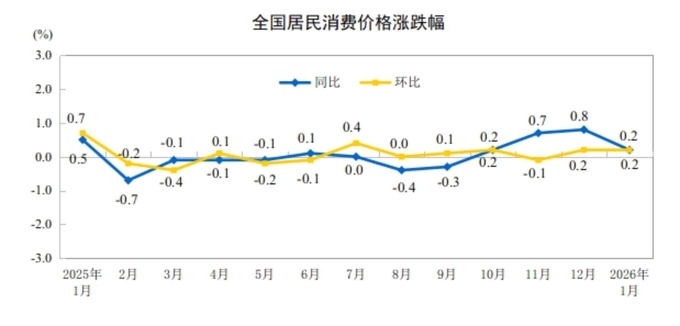 중국국가통계국이 11일 발표한 지난달 CPI는 전년 동월 대비 0.2% 상승했다. 전월 대비로도 0.2 % 상승했다.