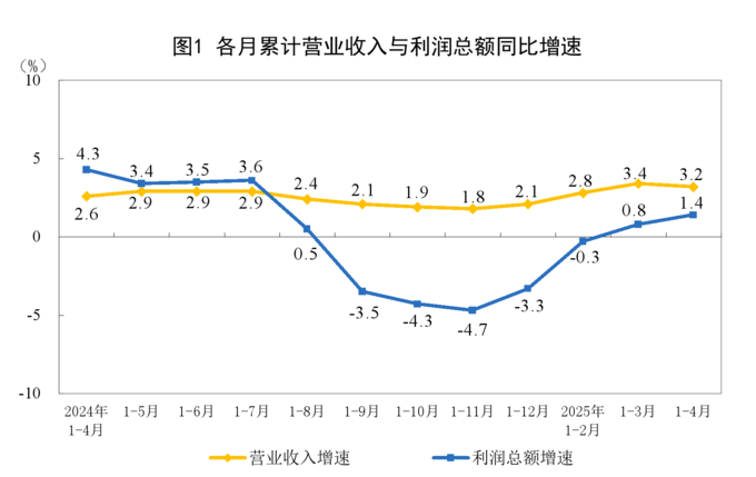 27일 중국 국가통계국이 공개한 1월부터 4월까지 규모 이상 공업기업의 총이익은 2조1170억2000만 위안으로 전년 동기 대비 1.4% 증가했다.